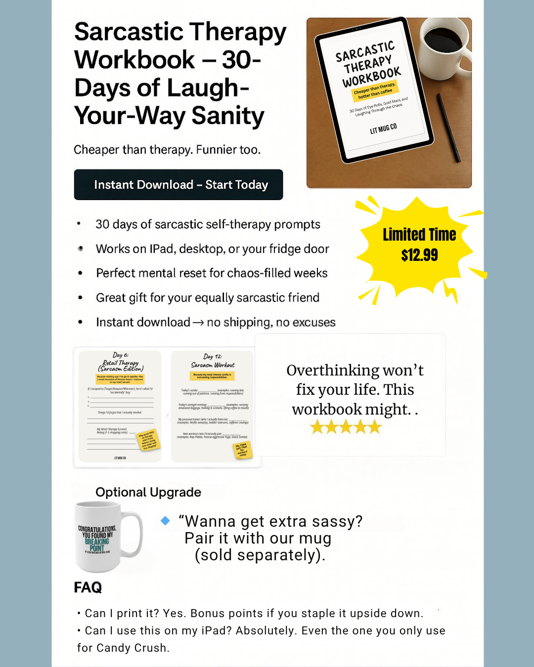 Tired of traditional self-care? Discover the hilariously refreshing sarcastic therapy workbook that promises 30 days of laugh-out-loud chaos-busting prompts, snarky affirmations, and a daily dose of humor to help you...